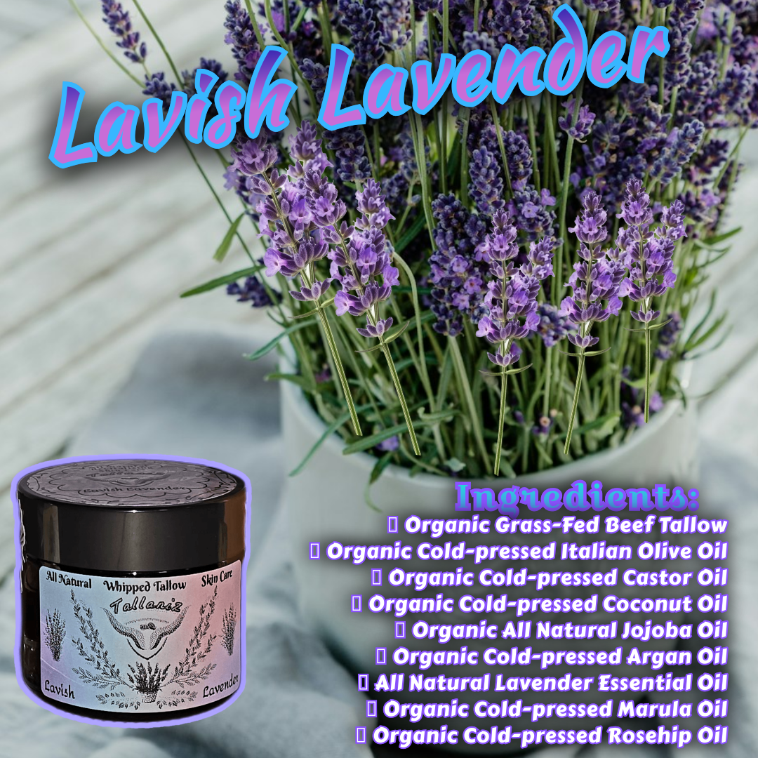 Our Lavish Lavender Whipped Tallow Cream is a luxuriously light, yet deeply nourishing formula designed to comfort both skin and senses.