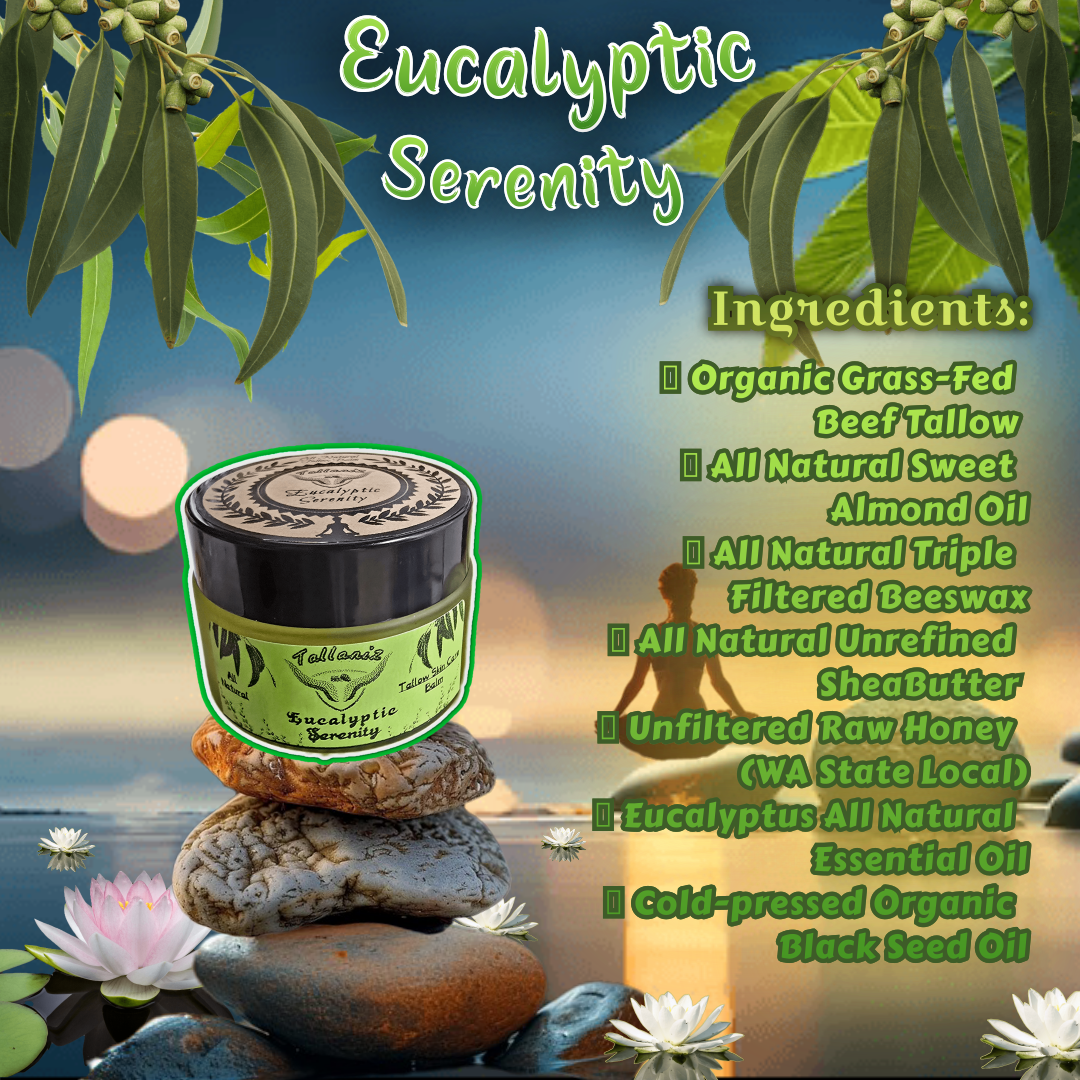Our Eucalyptic Serenity Tallow Balm is especially effective on tough, dry areas and has become a favorite among some of our customers (and us!) for use on the soles of the feet. Itās particularly appreciated during our cold Northwest winter months, when skin needs extra care and nourishment.